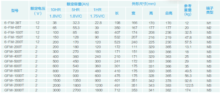 在20℃環(huán)境下,F(xiàn)M系列小型密封電池浮充壽命可達(dá)3~5年,F(xiàn)M固定型密封電池浮充壽命可達(dá)8~10年,F(xiàn)ML系列電池浮充壽命可達(dá)10年,F(xiàn)MH系列電池浮充壽命可達(dá)10年,GFM系列、太陽(yáng)能深循環(huán)系列電池浮充壽命可達(dá)15年,GFMJ系列電池浮充壽命可達(dá)18年。