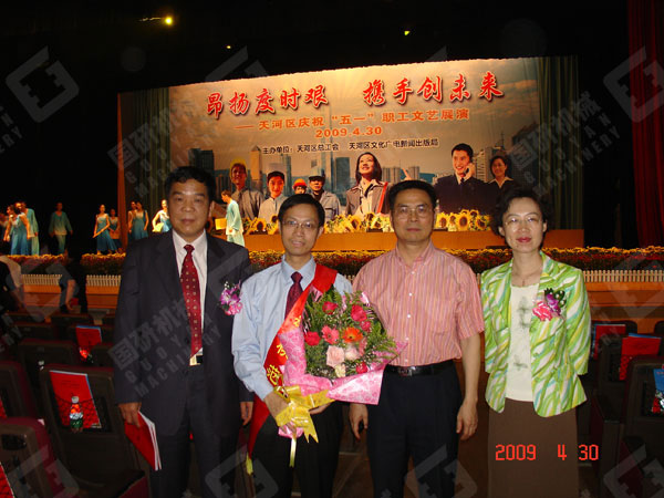 4月28日上午,廣州市委大禮堂張燈結(jié)彩、鑼鼓喧天,一派喜氣洋洋。廣州市委、市政府慶?!拔逡弧眹H勞動節(jié)暨勞動模范和先進(jìn)集體表彰大會在這里舉行。廣州市國研機(jī)械設(shè)備制造有限公司市場部經(jīng)理劉啟剛同志作為天河區(qū)6萬多家民營企業(yè)唯一當(dāng)選的廣州市勞動模范出席了表彰大會。廣東省委常委廣州市委書記朱小丹、市長張廣寧等省市領(lǐng)導(dǎo)親自為劉啟剛等勞動模范頒發(fā)廣州市勞動模范獎(jiǎng)狀和榮譽(yù)證書并合影留念。